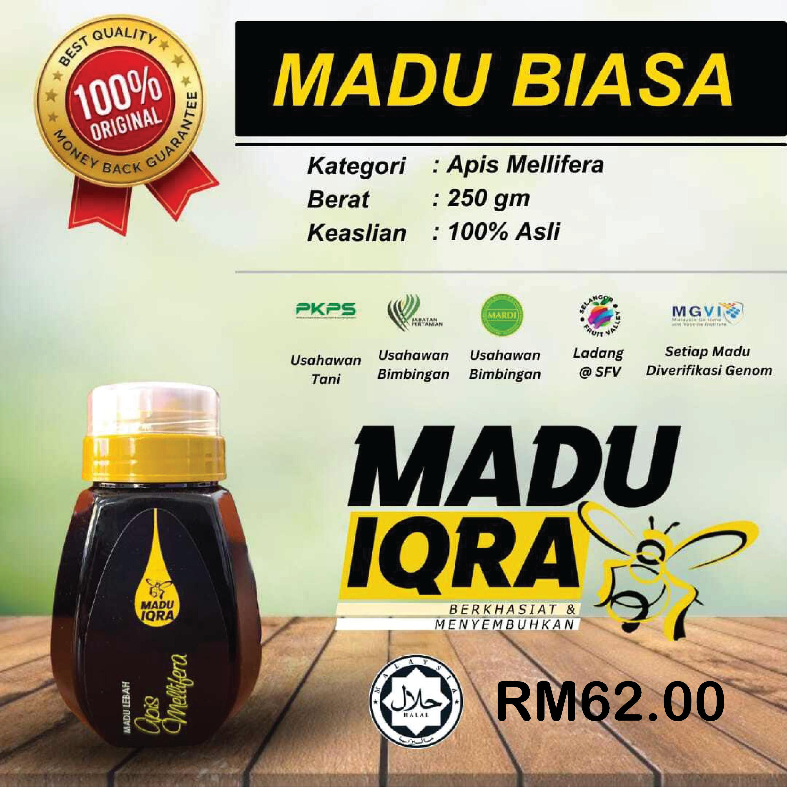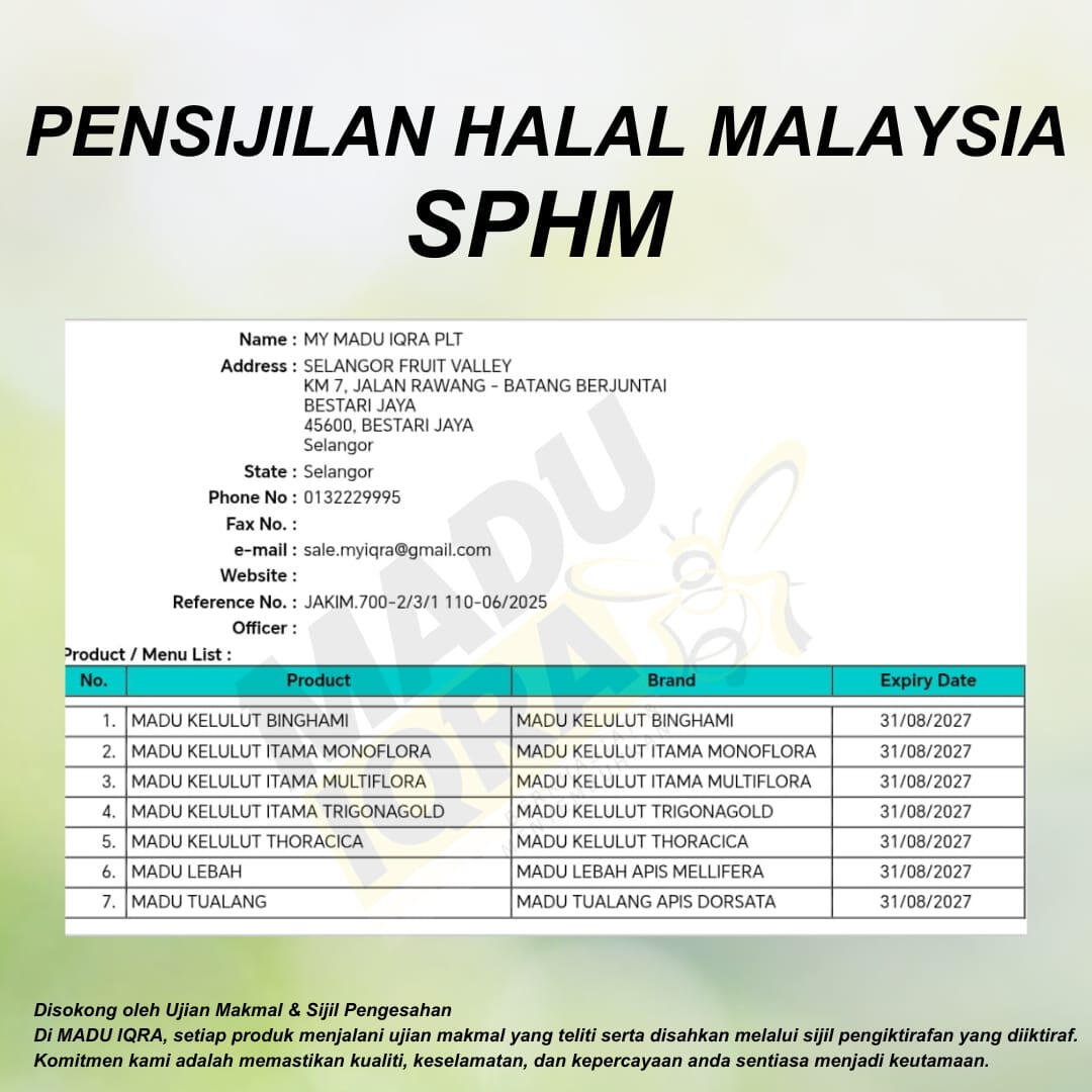 MADU IQRA adalah sebuah syarikat yang menjalankan aktiviti perusahan dan pemeliharaan lebah dan kelulut serta berpengalaman luas dalam industri sejak tahun 2011.Kami mempunyai ladang pemeliharaan lebah apis dan lebah kelulut seluas 50 ekar di dalam kawasan 100% hutan Akasia Mangium di Selangor Fruit Valley di bawah pentadbiran Perbadanan Kemajuan Pertanian Selangor (PKPS)Selain itu, kami juga mempunyai ladang-ladang satelit dibeberapa lokasi terpilih. Ini kerana peningkatan terhadap madu.