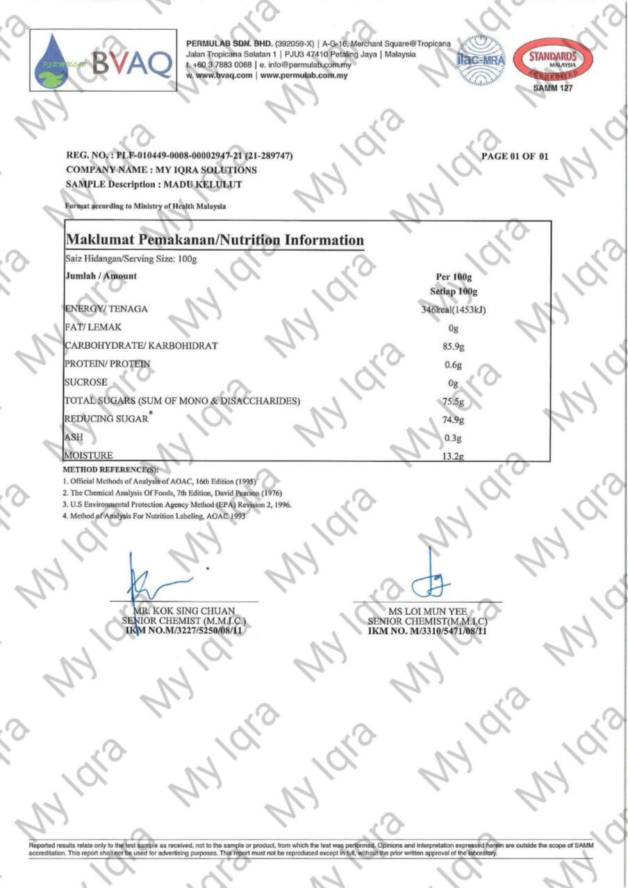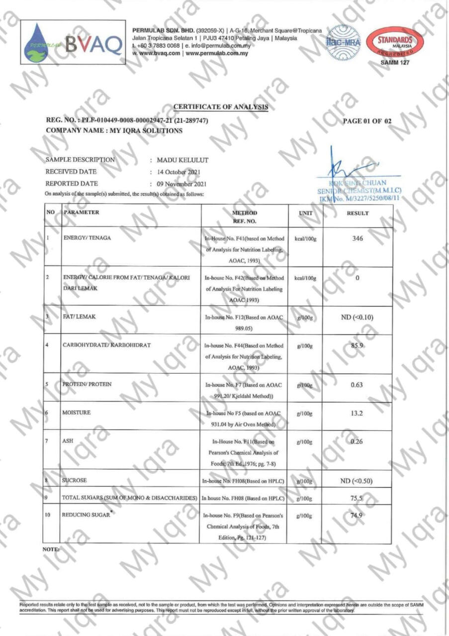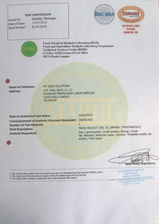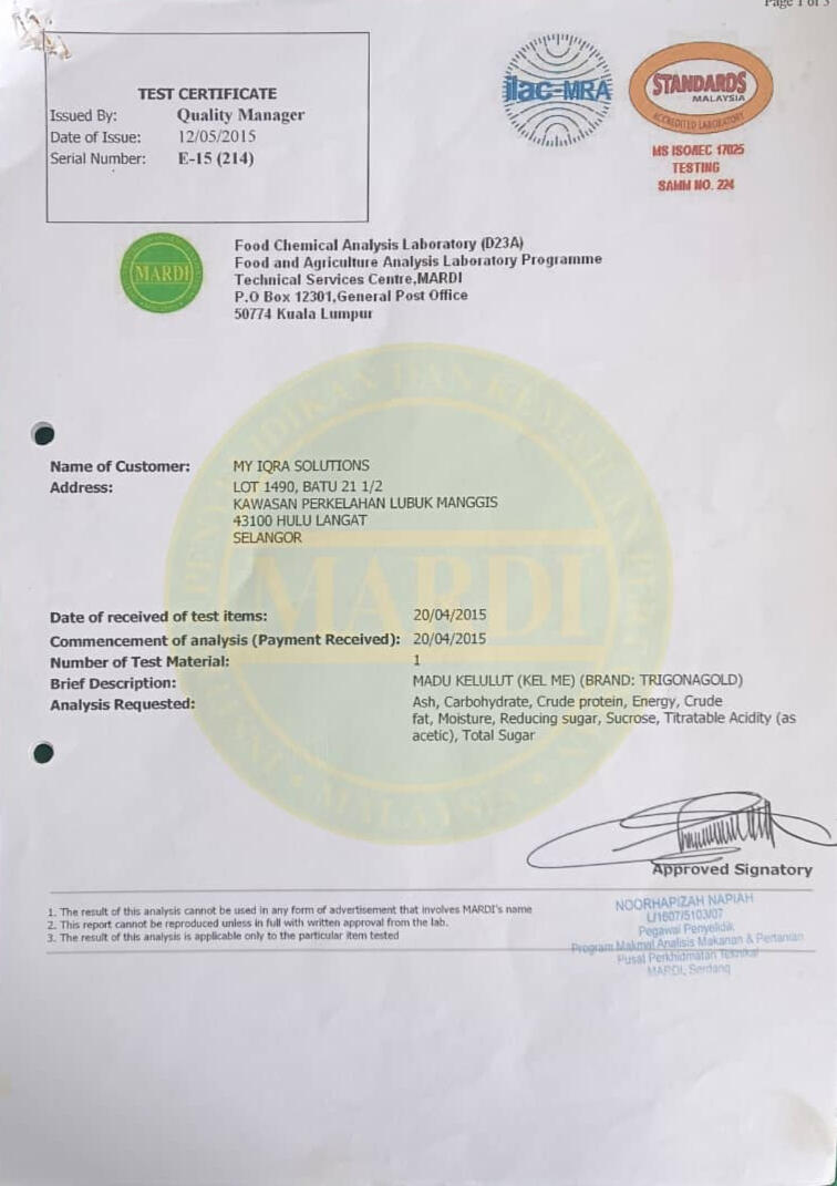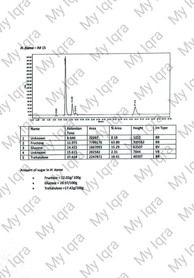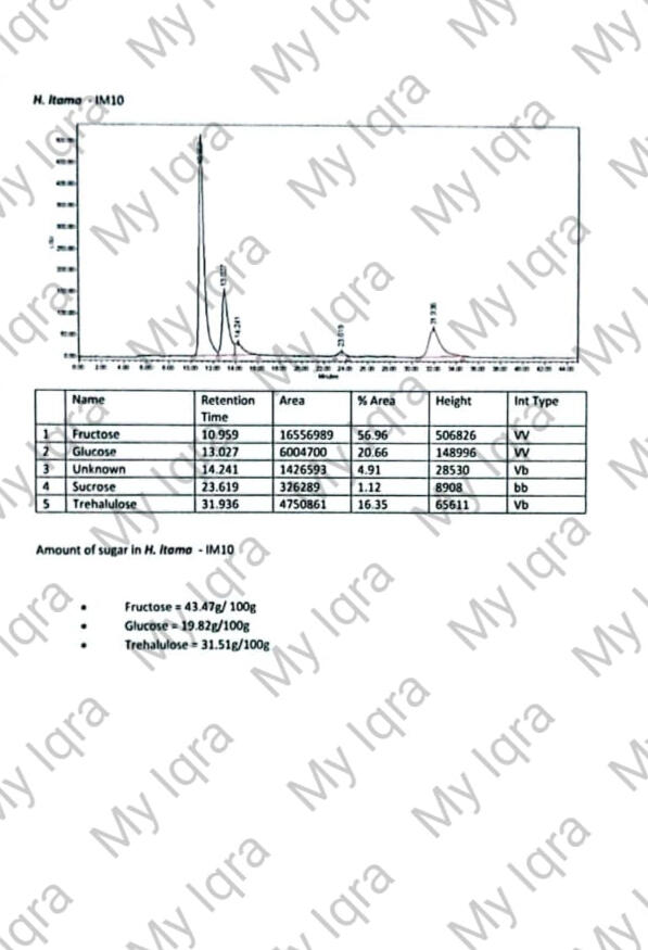 Tiga gambar dibawah menunjukkan bahawa Madu Kelulut kami mempunyai Trehalulose