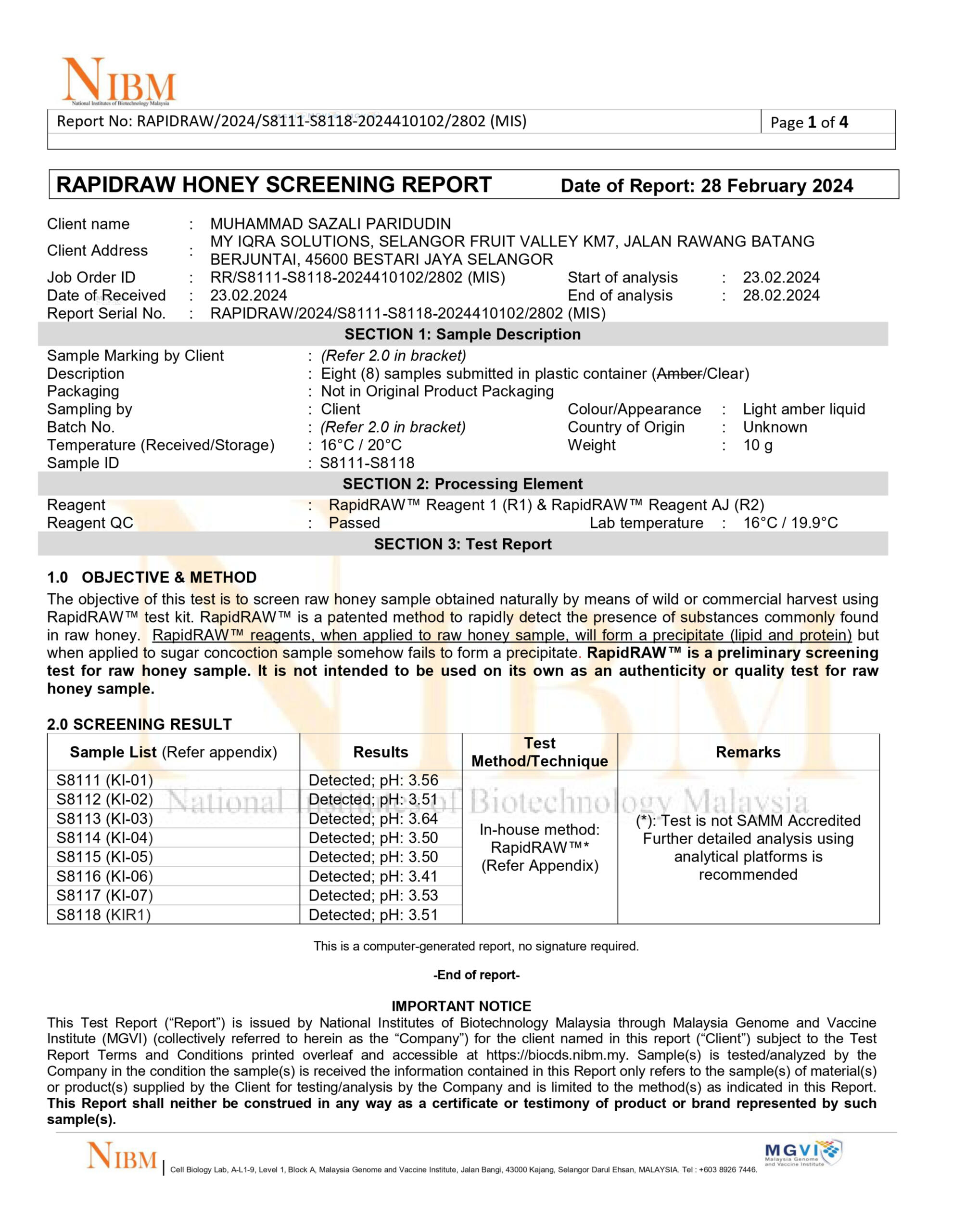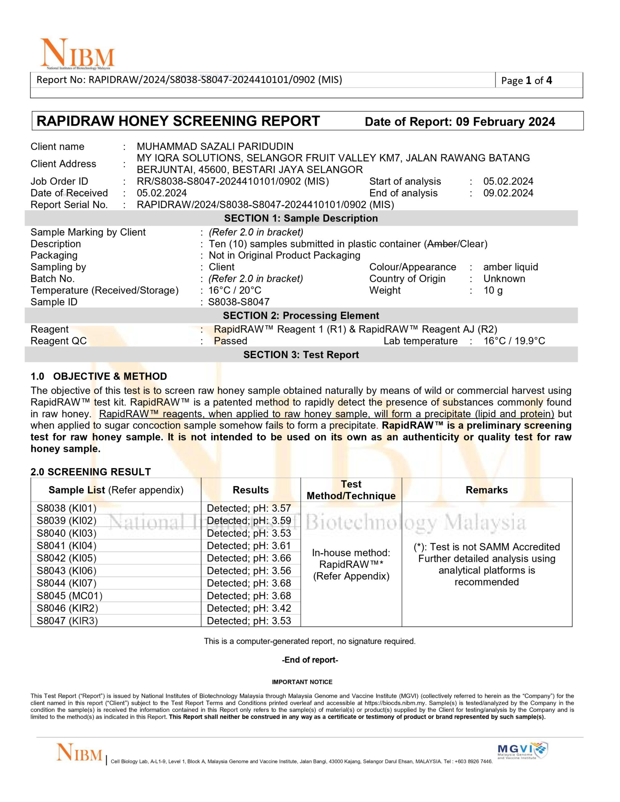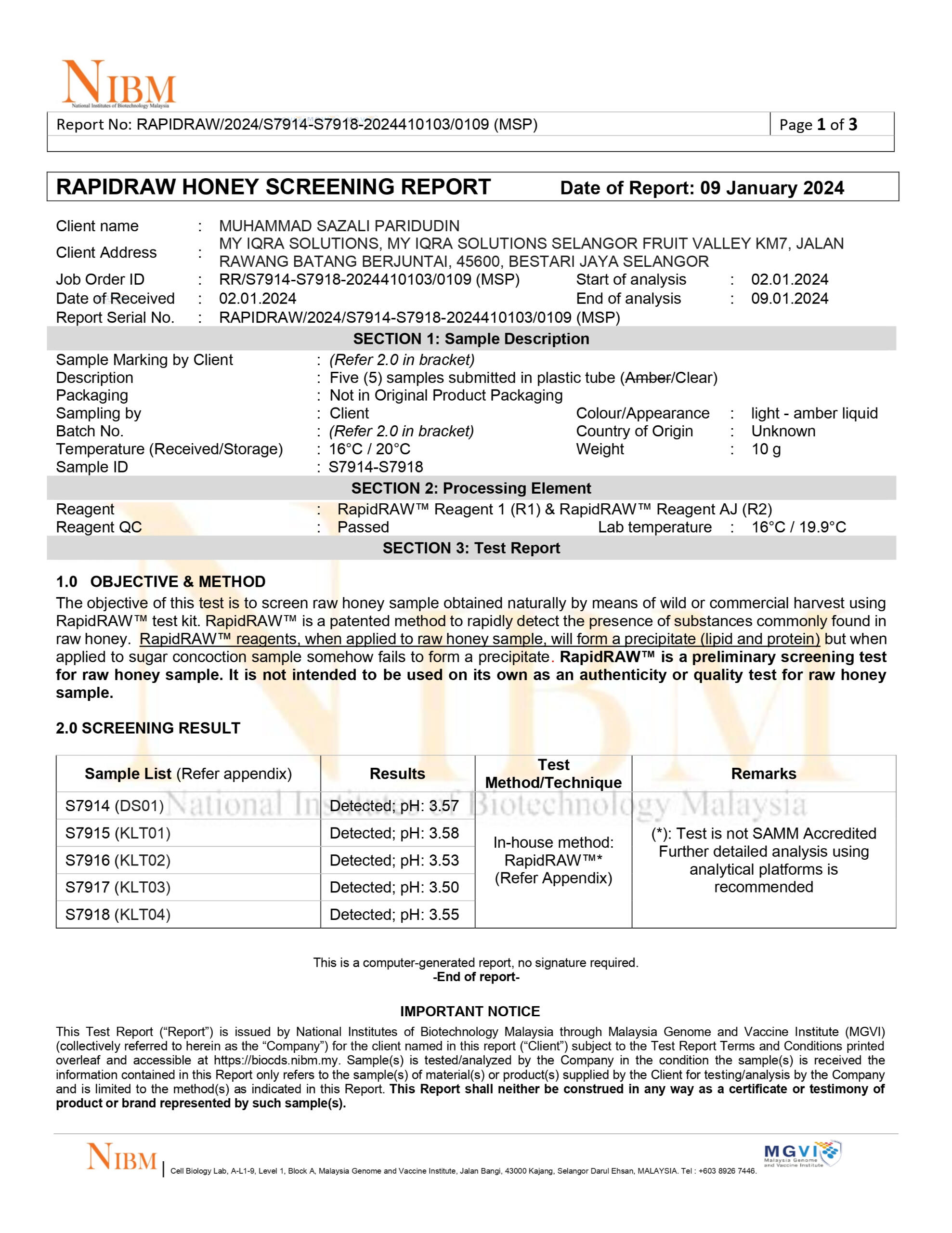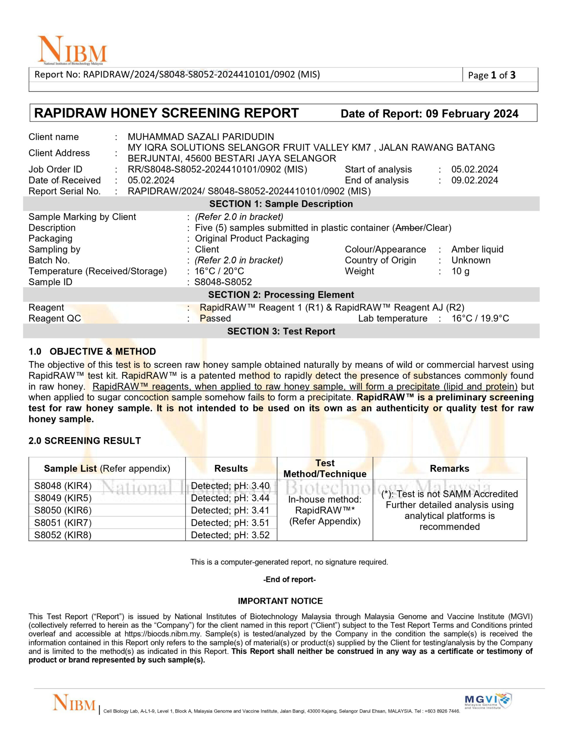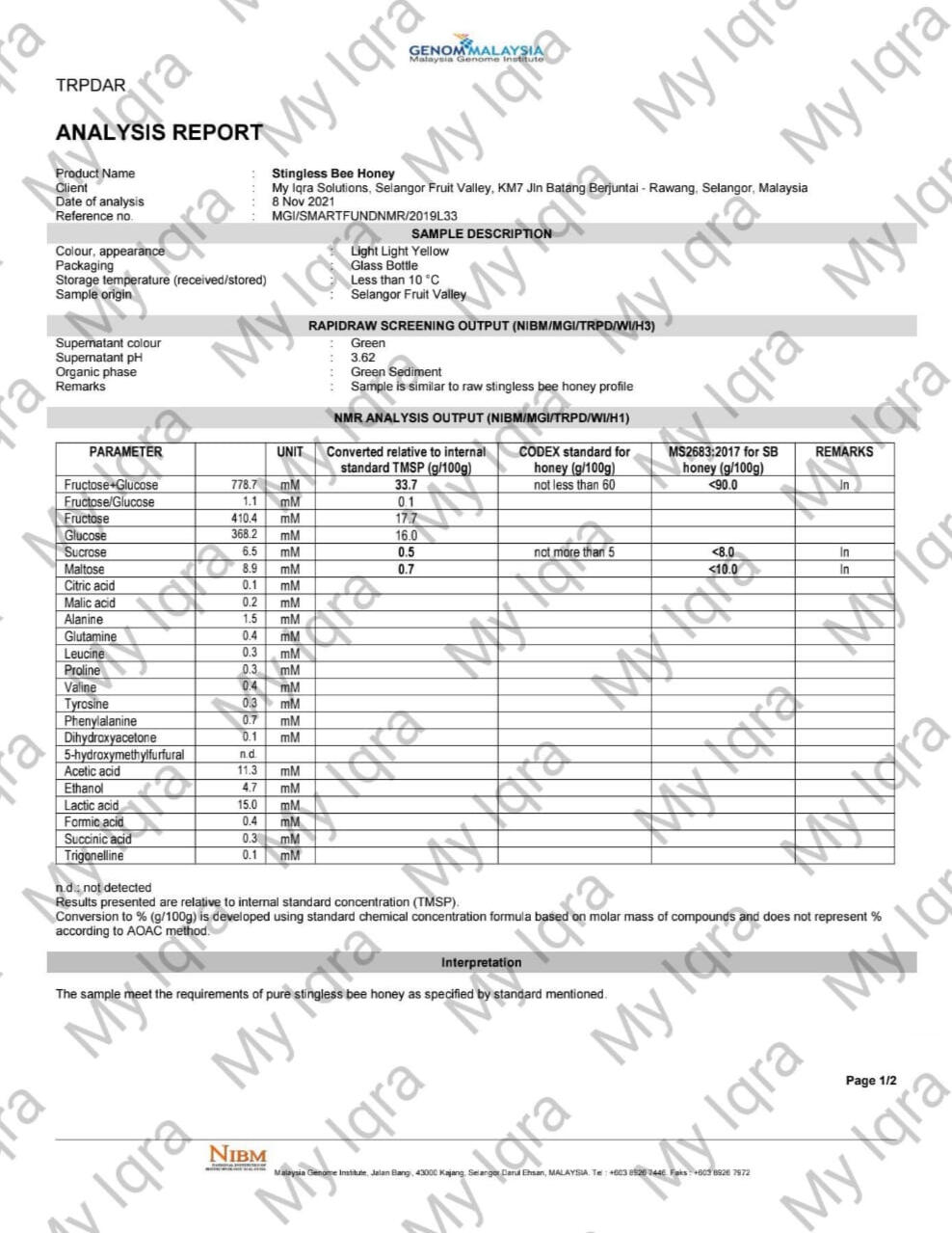 Tiga gambar dibawah menunjukkan bahawa Madu Kelulut kami mempunyai Trehalulose